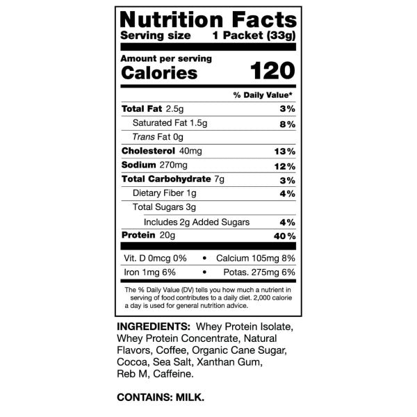 Indulge in the protein coffee you adore, now with a natural twist! Boasting 20 grams of non-GMO protein and an invigorating double shot of espresso, this blend is expertly sweetened with Reb M and organic cane sugar for a guilt-free delight.