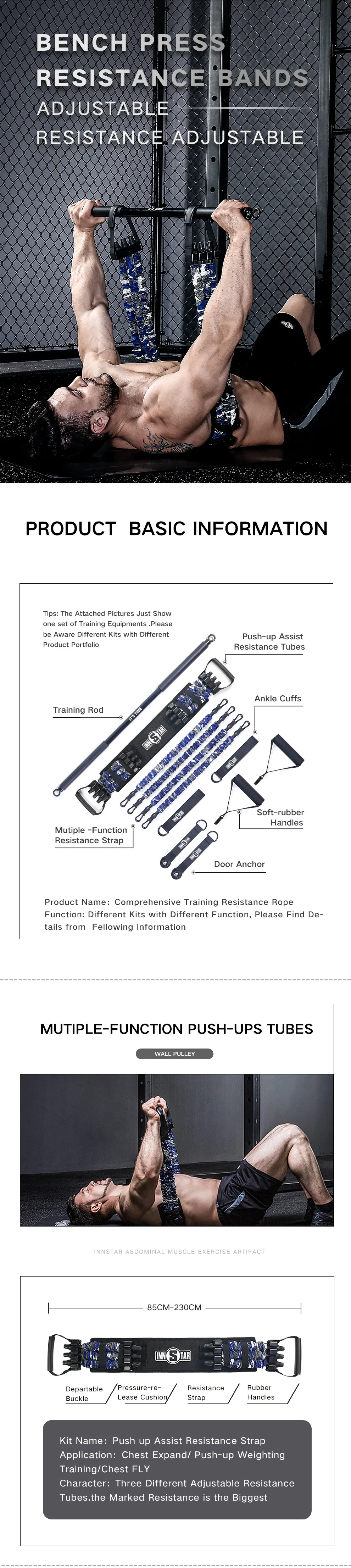 INNSTAR Camouflage Red Multifunctional training bench press resistance band set home workout fitness
