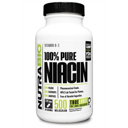 NutraBio 100% Pure Niacin (120 Caps)
