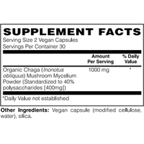🌿 U.S. Grown & Organic: Our Chaga is nurtured on home soil, ensuring premium quality and potency in every 1g of mushroom mycelium powder packed into each vegetarian capsule.