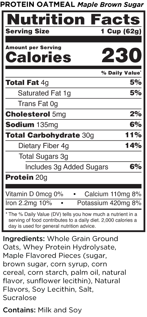 Made with real dried fruit pieces, Rule1 Easy Protein Oatmeal™ comes in a variety of flavors. Available in single-serve cups or as a variety pack containing Maple Brown Sugar, Apple Cinnamon, and Banana Nut flavors. Each individually packaged cup contains a convenient, travel-sized spoon.